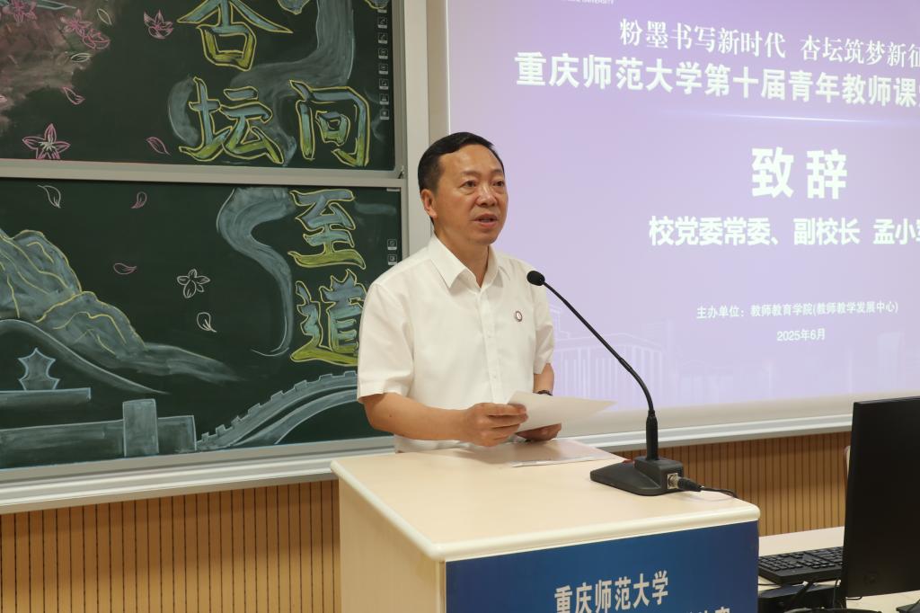 孟小軍在致辭中指出,青年教師作為學(xué)校教學(xué)主力軍,肩負(fù)著培養(yǎng)新時(shí)代優(yōu)秀人才的重任。學(xué)校舉辦青年教師課堂教學(xué)比賽,旨在營(yíng)造重視教學(xué)、鉆研教學(xué)的良好氛圍,激勵(lì)青年教師不斷追求卓越,提高教學(xué)質(zhì)量。課堂教學(xué)是立德樹人的主陣地,青年教師要始終以學(xué)生為中心,深耕教學(xué)藝術(shù),推動(dòng)課堂革命。作為學(xué)校傳承多年的品牌活動(dòng),青年教師課堂教學(xué)比賽已成為錘煉師資隊(duì)伍、促進(jìn)教學(xué)交流的重要平臺(tái),為學(xué)校培養(yǎng)了一大批優(yōu)秀教師和業(yè)務(wù)骨干。他強(qiáng)調(diào),在人工智能時(shí)代,教師要提升數(shù)字化教學(xué)能力,積極踐行“以生命影響生命、以智慧啟迪智慧”的教育真諦。他勉勵(lì)青年教師要弘揚(yáng)教育家精神,夯實(shí)教學(xué)根基,努力成為“經(jīng)師”與“人師”相統(tǒng)一的“大先生”。