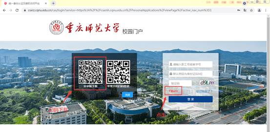 1.請廣大師生通過電腦或手機瀏覽器訪問重慶師范大學首頁http://www.hhx4w2l.xyz/,點擊校園門戶,進入校園門戶首頁。或直接訪問校園門戶地址https://www.csxrz.cqnu.edu.cn/。
