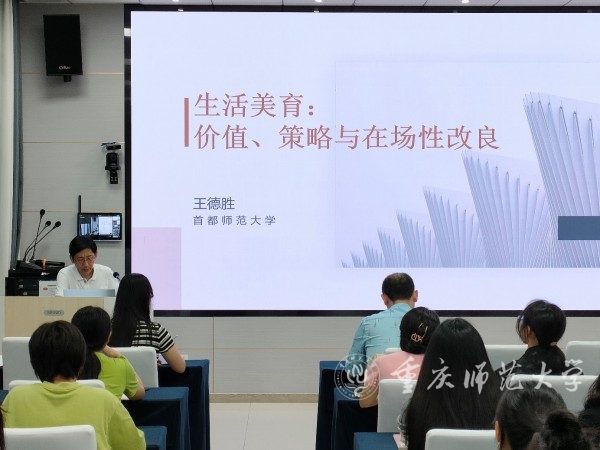 5月28日,文學院“精是講堂”邀請首都師范大學王德勝教授舉辦了題為“生活美育:價值、策略與在場性改良”的學術講座。講座由文學院賈瑋教授主持,文學院相關專業研究生及本科生參加。