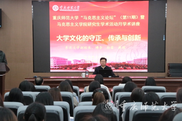 為進(jìn)一步加強(qiáng)馬克思主義學(xué)院學(xué)科建設(shè),提高馬克思主義理論學(xué)科人才培養(yǎng)質(zhì)量,營造濃厚的學(xué)術(shù)氛圍,3月31日下午,我校馬克思主義學(xué)院特邀東北大學(xué)黨委常委、副校長、博士生導(dǎo)師孫雷教授于匯賢樓122會議室為馬克思主義學(xué)院師生作題為“大學(xué)文化的守正、傳承與創(chuàng)新”的學(xué)術(shù)講座,講座由馬克思主義學(xué)院副院長姜土生主持。