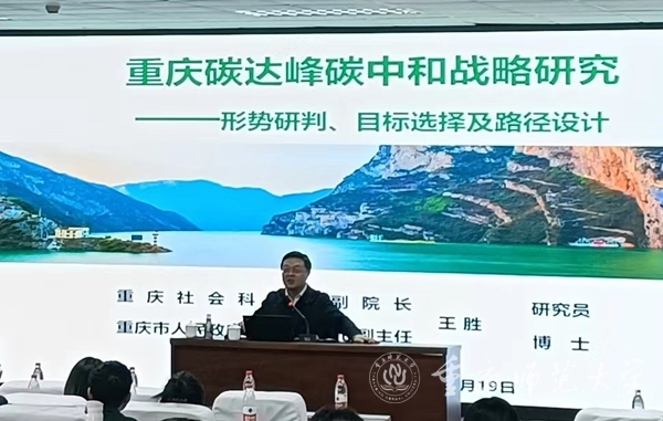 5月19日下午,重慶社會科學院副院長王勝研究員應我校經濟與管理學院邀請,于求是樓517會議室就“重慶碳達峰碳中和戰略研究——形勢研判、目標選擇及路徑設計”主題作專場學術講座。講座由經濟與管理學院副院長陳宇科主持,學院青年教師和研究生參與了此次講座。