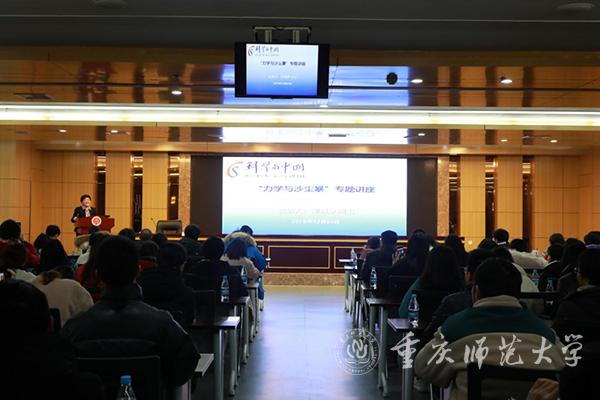 2019年12月22日上午,鄭曉靜院士在我校博雅樓503作了“力學與沙塵暴”專題講座。講座由重慶師范大學副校長楊新民教授主持,物理與電子工程學院、地理與旅游學院、化學學院等部分師生到場聆聽。