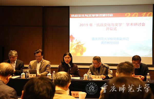 開幕式上,重慶師范大學校黨委副書記龔燕在致辭中表示,文化是民族生存和發展的重要力量,也是一個國家、一個民族的靈魂。2019年“抗戰文化和文學”學術研討會,將結合文化大發展的有利契機,圍繞抗戰文化與文學學術領域熱點、難點和前沿問題展開深入研討,啟迪思維、交流互鑒,相信會在理論創新、專業發展、文化傳承、人才培養等方面形成切合實際的智慧成果。