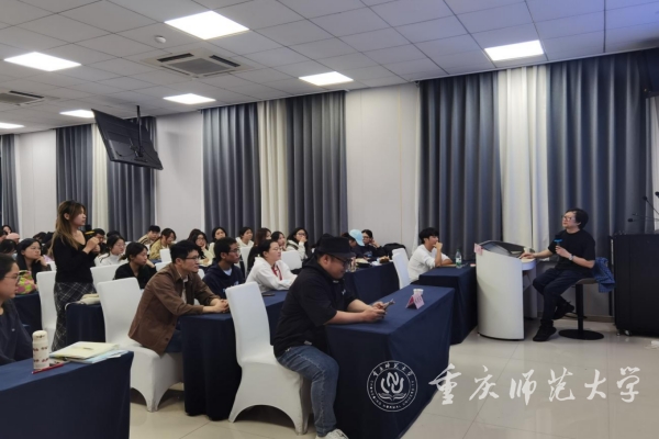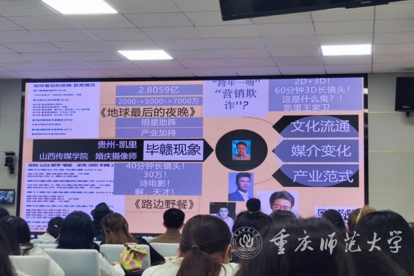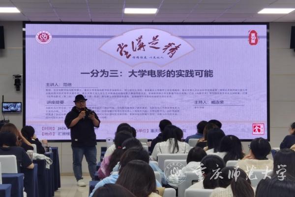 10月17日晚,重慶大學美視電影學院常務副院長范倍教授受邀在匯賢樓113報告廳為學校師生作題為《一分為三:大學電影的實踐可能》的專題講座,講座由學校教師、青年導演臧連榮主持,學校新聞與傳媒學院、文學院部分師生代表參加講座。