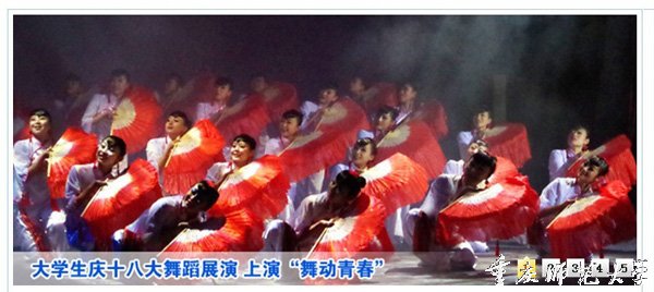 據悉,重慶師范大學為迎慶十八大,開展了一系列豐富多彩的活動。此次“舞動青春”舞蹈展演活動,是該校共青團系統組織開展的迎接和慶祝十八大系列活動之一。